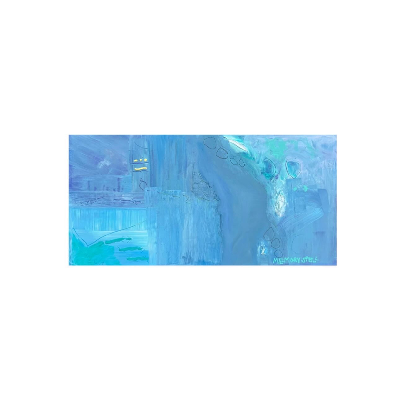 Original abstract painting in soothing blues. 2024. Mixed media on canvas. 50cm x 100cm. 2cm depth.